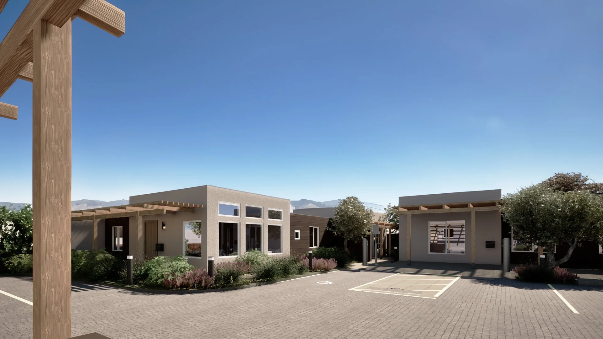 Sustainable, Community-Oriented Housing: The project is committed to providing housing solutions that meet the needs of the community while safeguarding the environment for future generations. Concrete is minimized to reduce the “heat island” effect, while permeable pavers are implemented to reduce stormwater runoff. Highly efficient thermal envelopes, solar panels, and materials with extremely low lifecycle costs all contribute to the success of the project as one that looks ahead to decades of sustainable performance.